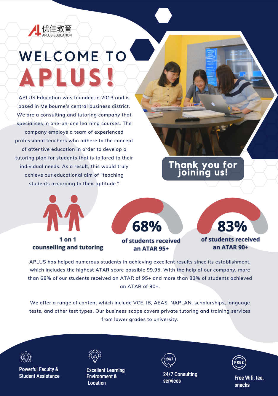 APLUS Education is a tutoring company that focuses on VCE, IB, NAPLAN, Primary, Sholarship Tests and more.
